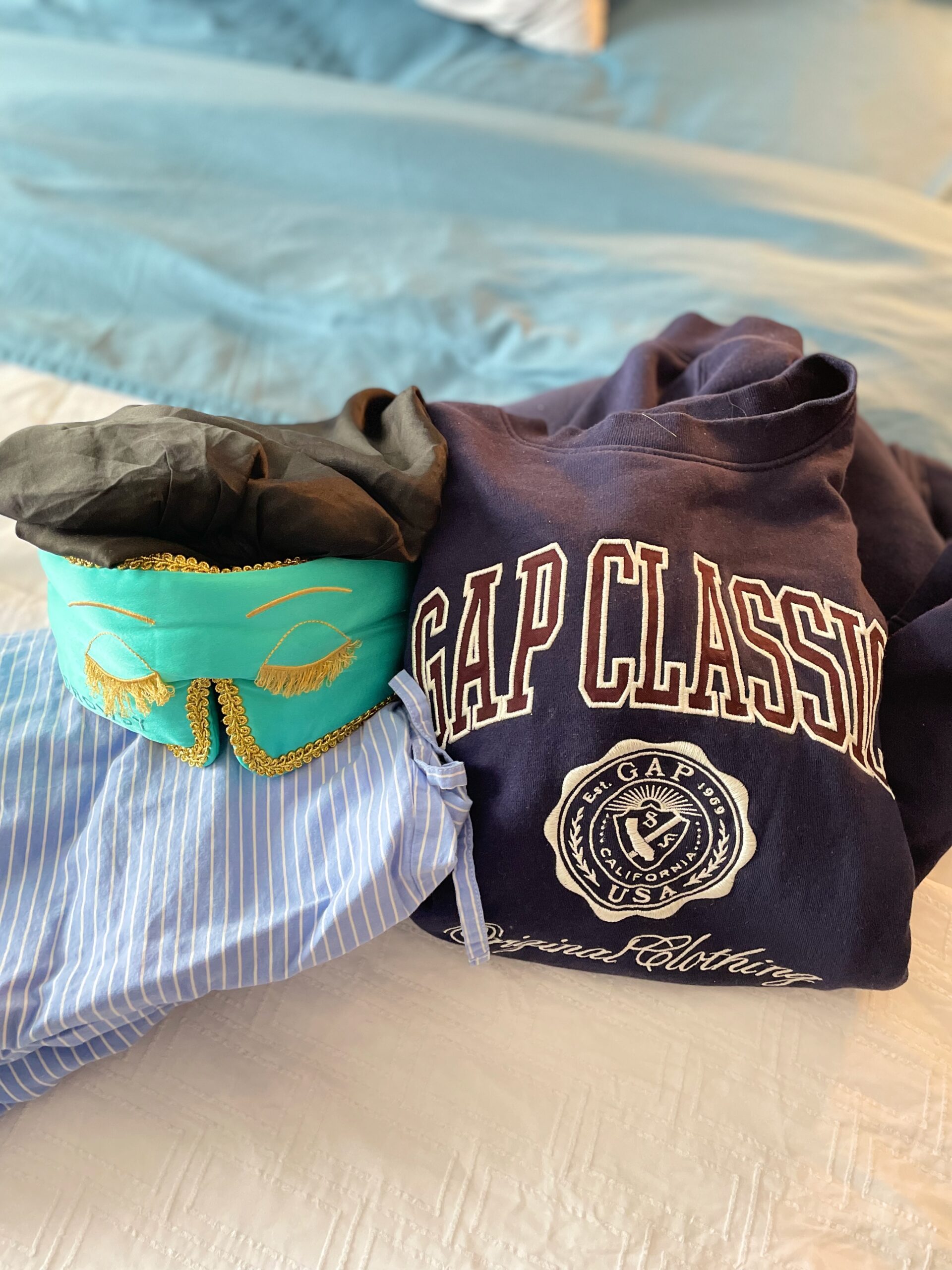 In transitions like this, small comforts matter. A familiar hoodie. A sleep mask. A quiet moment on a hotel bed. The objects themselves were simple, but they carried continuity — a way of telling the body that rest was still possible, even here.