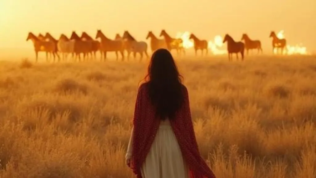 A great herd of horses, ignited in flames.