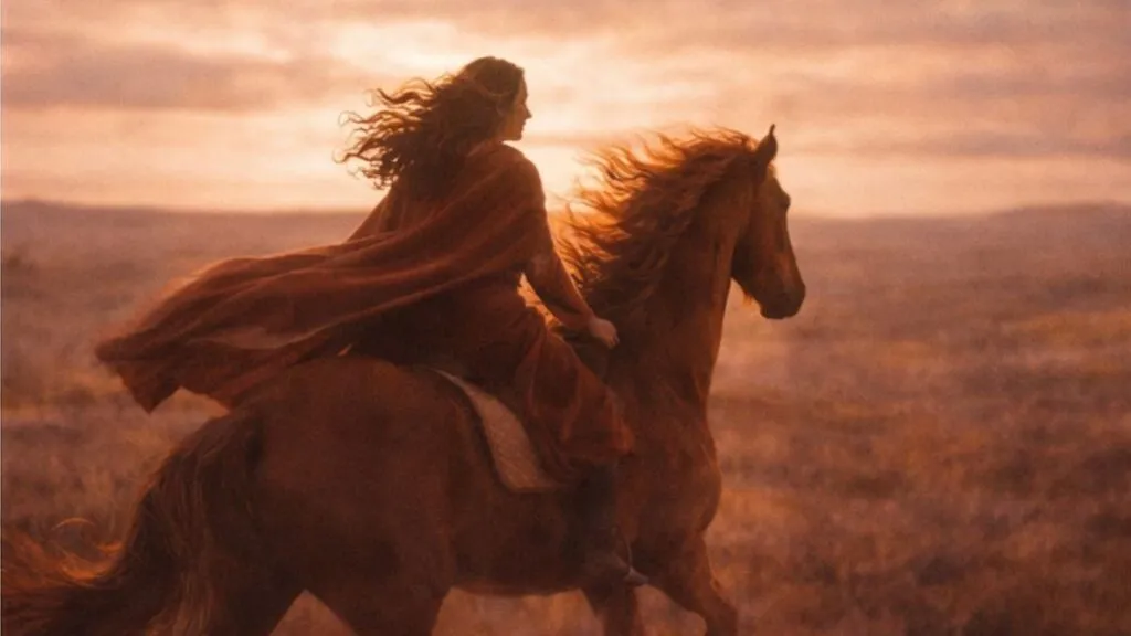 It is the Fire Horse – galloping across golden fields of abundance and opportunity. Heat moves through the air. Wind lifts the hem of my dress, carrying the scent of dust and flame.